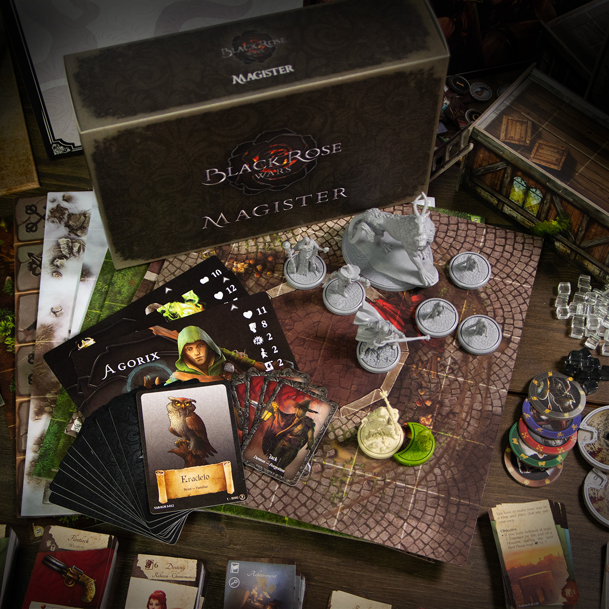The Magister Box adds the crossover material of Nova Aetas Renaissance in any Black Rose Wars game! New mages, a new familiar, and many powerful and deadly evocations await you!